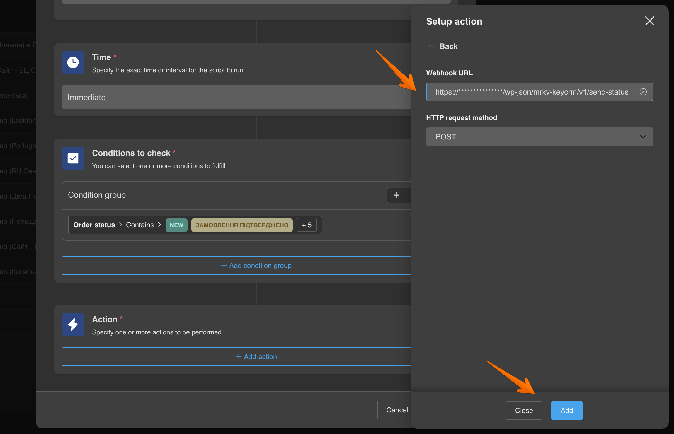 копіюйте URL адресу для веб-хука (з розділу Статуси замовлень),